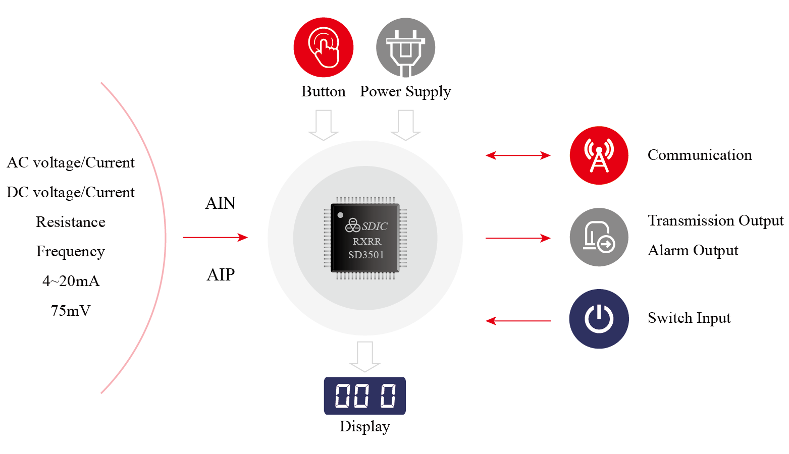 Integrated TRMS. External rectifier device is not needed for AC measurement