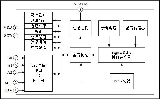 SD5075是一款高準(zhǔn)確度溫度傳感器芯片,內(nèi)含高精度測溫ADC,在-40~+100℃范圍內(nèi)典型誤差小于±0.5℃,在-55~+125℃范圍內(nèi)典型誤差小于±1.0℃。通過兩線I2C/SMBus接口可以很方便與其他設(shè)備建立通信。設(shè)置A2~ A0的地址線,可支持8片芯片并聯(lián)總線連接。本芯片可選3種工作模式:連續(xù)測溫模式,單次測溫模式,關(guān)斷模式??筛鶕?jù)速度或功耗的需求靈活選擇和配置。
