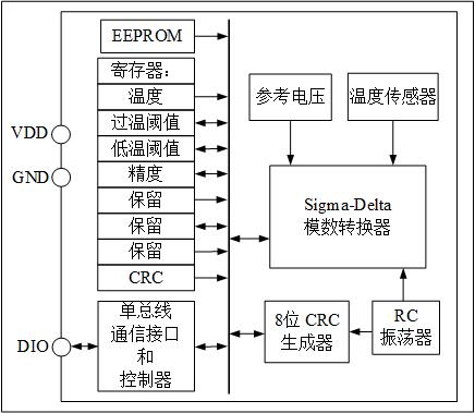 單總線通信接口,可使用通信線進行供電,帶CRC校驗功能